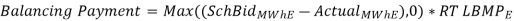 BalPay$ = (SchBidMWhI – ActualMWhI) * RT LBMPI