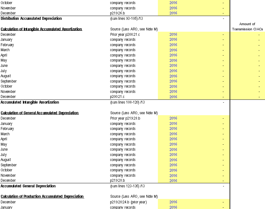 F | Ending balance of year is the end of [INSERT YEAR] balance, as reflected on FERC Form No. 1, pages 232 (Account 182.3) and 278 (Account 254) | |||||||||||||||||||||||