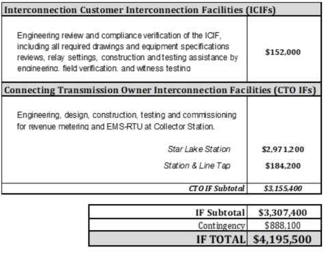 the time of the Facilities Study is $250k and is included in the Star Lake cost estimate. The