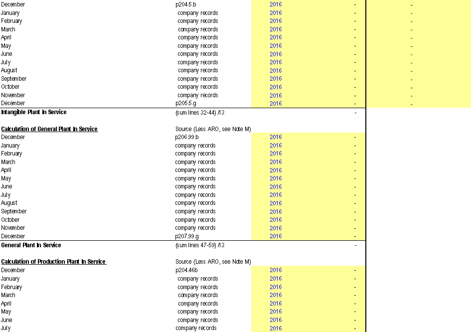 Ending balance of year is the end of [INSERT YEAR] balance, as reflected on FERC Form No. 1, pages 232 (Account 182.3) and 278 (Account 254)