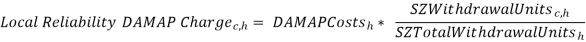 Pursuant to this Section 6.1.9.1, the ISO shall recover the costs of payments to Special Case Resources and Curtailment Service Providers that were called to meet the reliability needs of a local system.  To do so, the ISO shall charge, and each Transmission Customer that serves Load in the Subzone for which the reliability services of the Special Case Resources and Curtailment Service Providers were called shall pay based on its Withdrawal Billing Units that are not used to supply Station Power as a third-party provider, an hourly charge in accordance with the following formula for each Subzone.