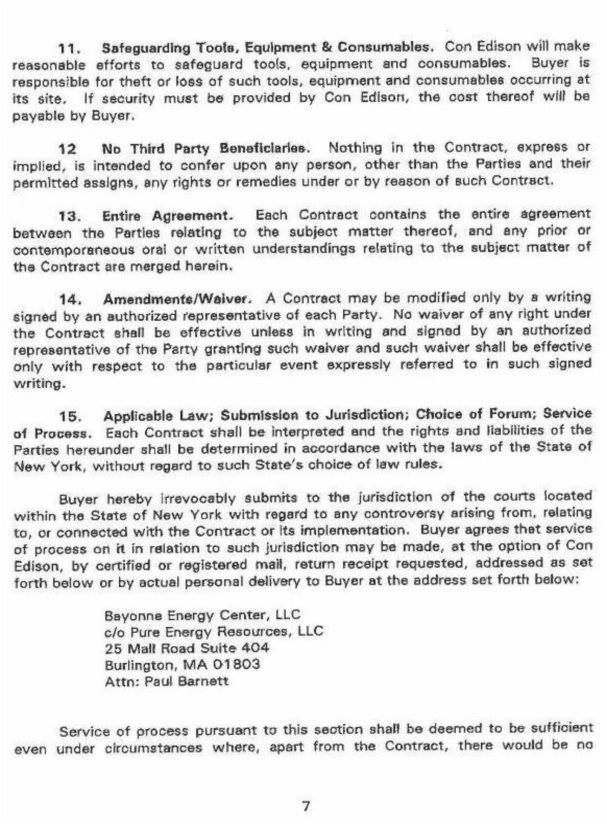 Edison”) and Bayonne Energy Center, LLC, a limited liability corporation organized and