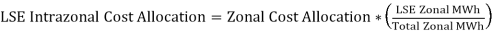 31.5.4.4.4.3 Within zones, costs will be allocated to LSEs based on MWhs calculated for each LSE for each zone using data from the most recent available 12 month period. Allocations to an LSE will be calculated in accordance with the following formula: