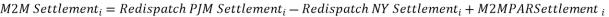 M2M PJM settlement, defined as a payment from NYISO to PJM when the value is positive, and a payment from the PJM to NYISO when the value is negative for interval i;